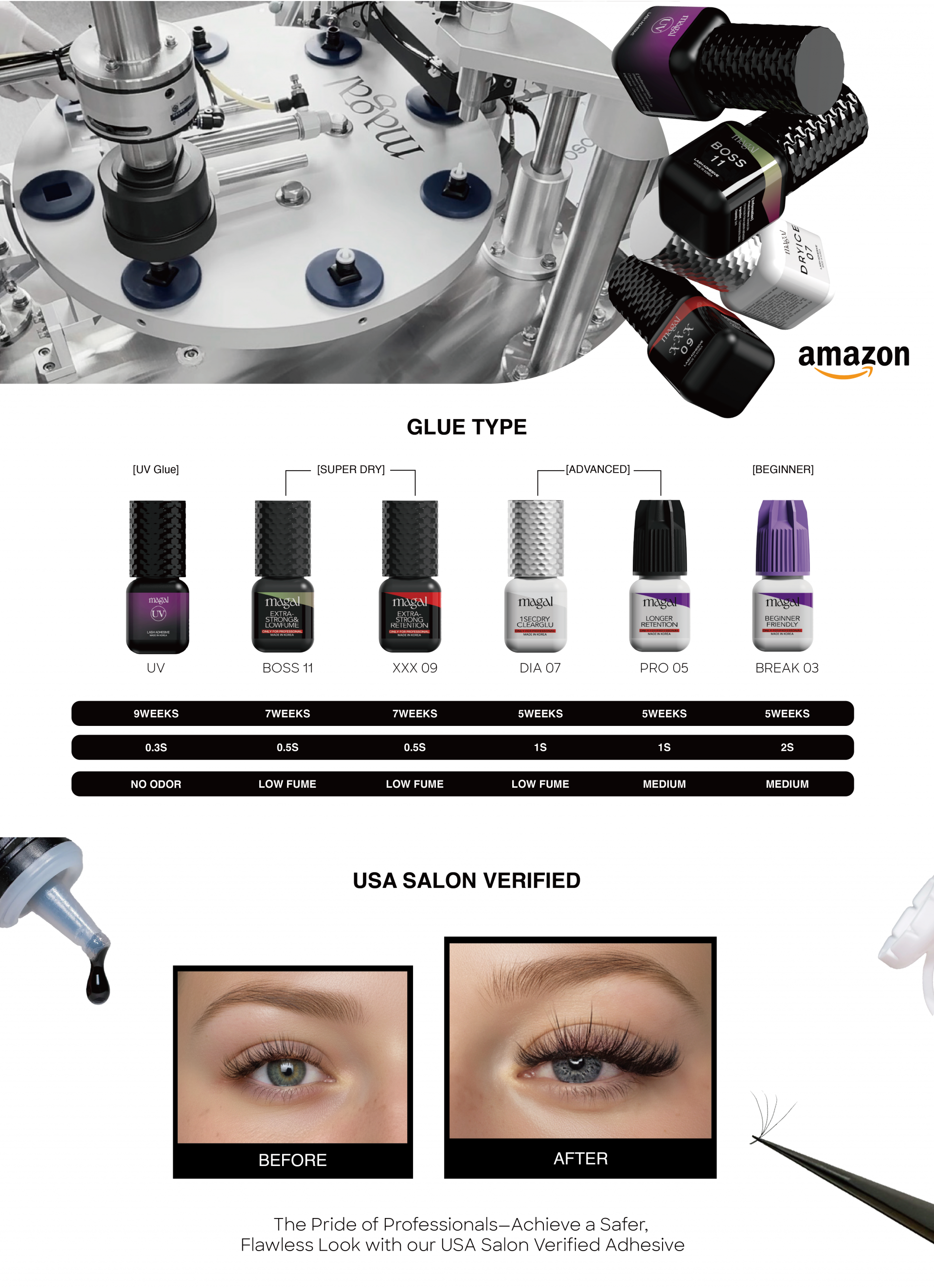 - Tried and Trusted in American Salons: Magal eyelash glue, made with the highest quality Korean ingredients, has been extensively tested in American salons. It's safe, latex-free, making it ideal for eyelash extensions. Not for personal use.